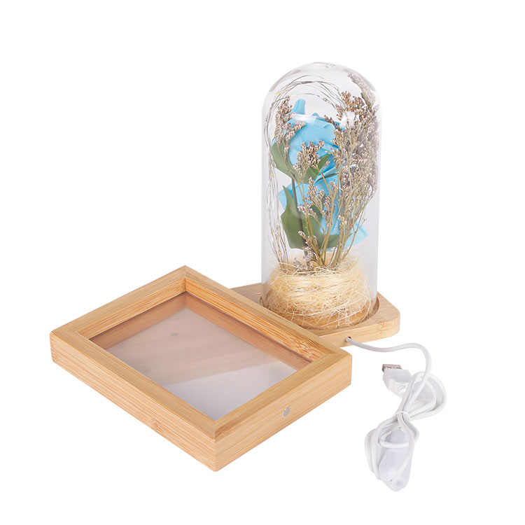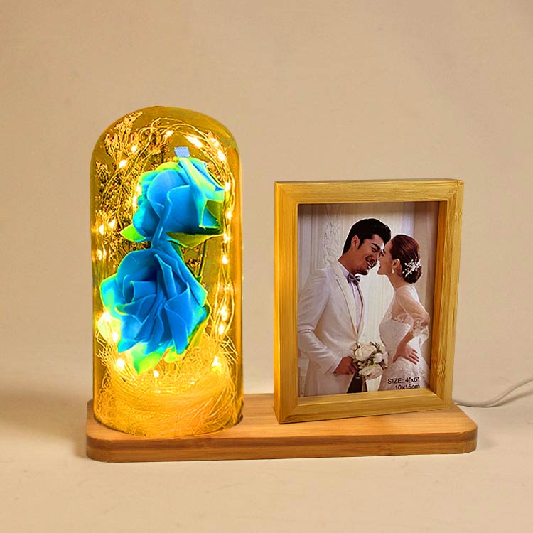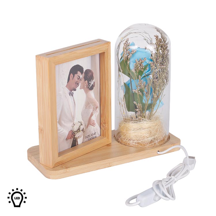 Fotoğraf Çerçevesi – LED’li Ahşap Çerçeve Güllü Cam Fanus